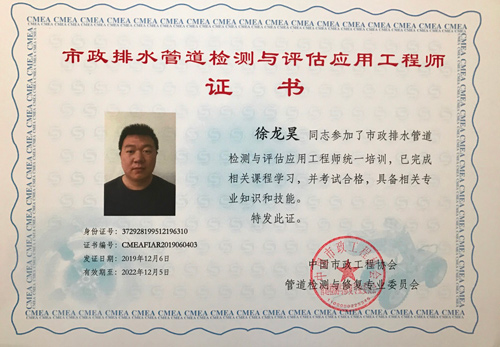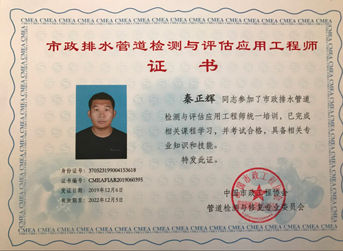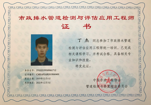 祝賀!致合必拓9名員工“2019年第三期市政排水管道檢測與評估應用工程師培訓”順利結業