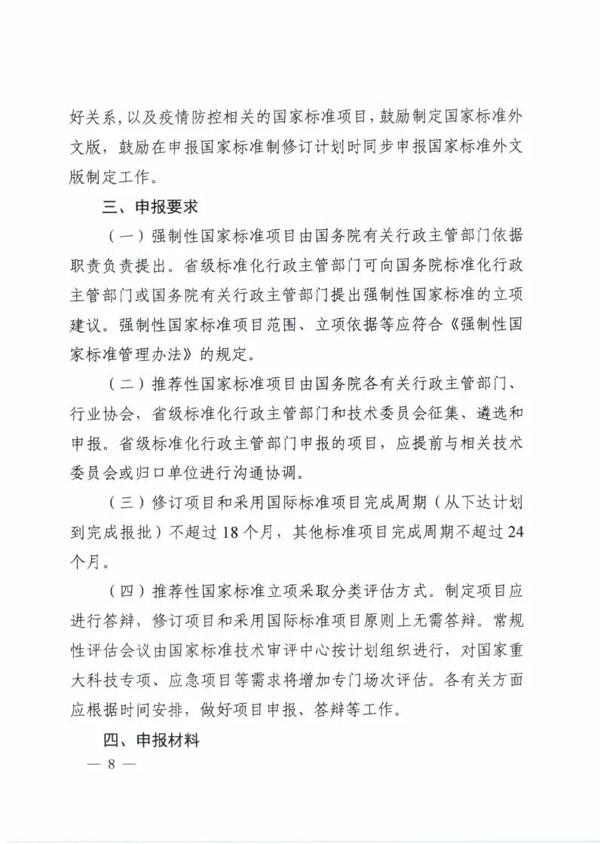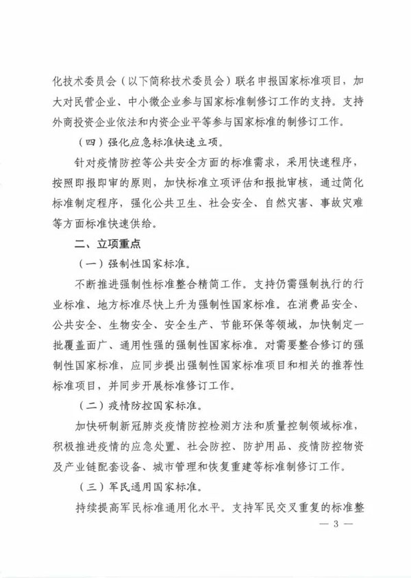 近日,國(guó)家標(biāo)準(zhǔn)委發(fā)布《2020年國(guó)家標(biāo)準(zhǔn)立項(xiàng)指南》。根據(jù)《指南》,2020年國(guó)家標(biāo)準(zhǔn)立項(xiàng)重點(diǎn)包括強(qiáng)制性國(guó)家標(biāo)準(zhǔn)、疫情防控國(guó)家標(biāo)準(zhǔn)、軍民通用國(guó)家標(biāo)準(zhǔn)、國(guó)際標(biāo)準(zhǔn)轉(zhuǎn)化國(guó)家標(biāo)準(zhǔn)、重點(diǎn)領(lǐng)域國(guó)家標(biāo)準(zhǔn)、標(biāo)準(zhǔn)樣品、國(guó)家標(biāo)準(zhǔn)外文版。詳情如下: