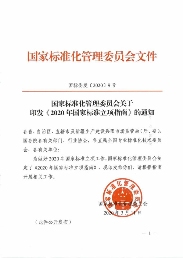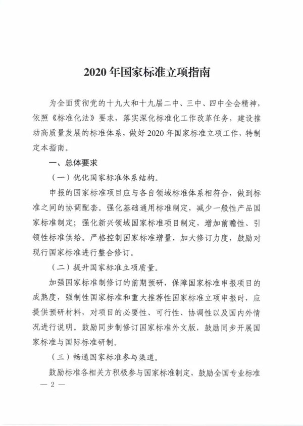 《2020年國(guó)家標(biāo)準(zhǔn)立項(xiàng)指南》發(fā)布