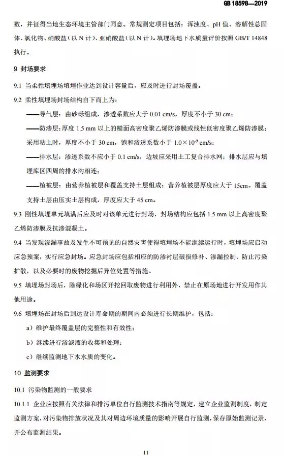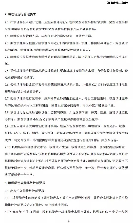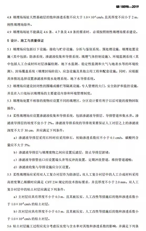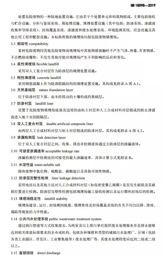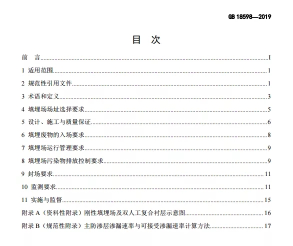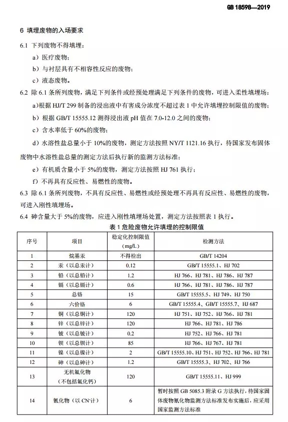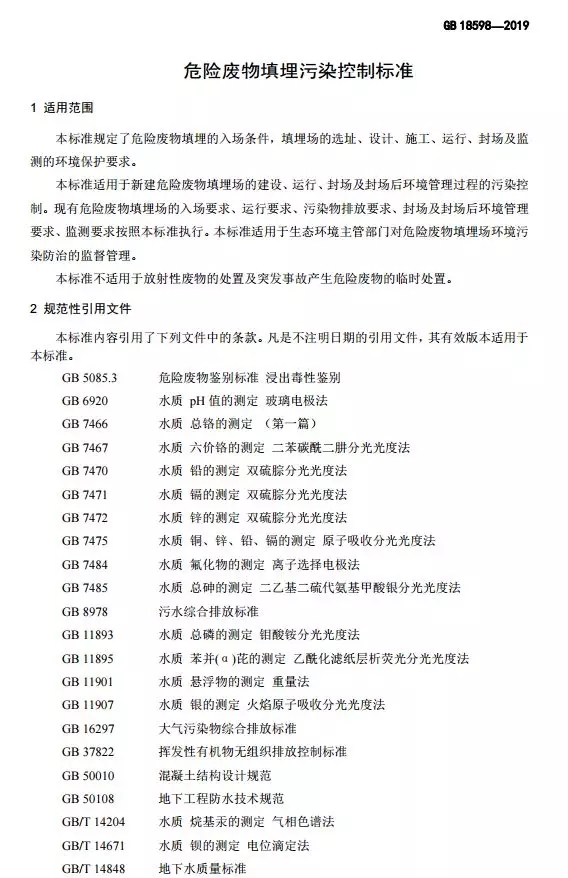 危險廢物填埋污染控制標準(GB 18598-2019)
